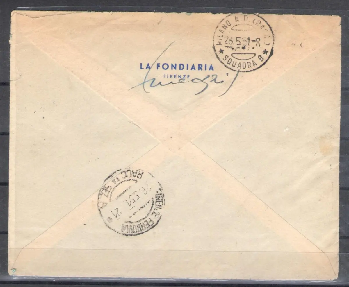 1951 Republik, Gymnasien auf Umschlag, Einschreiben am 26.5.1951 von Florenz nach Mailand gereist - Caffaz Zertifikat - Selten