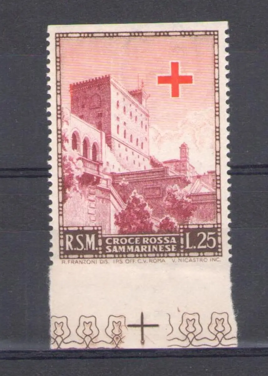 1951 San Marino, Nr. 369b Rotes Kreuz horizontal ungezähnt - postfrisch ** SÄCHSISCHER KATALOG Euro 200 - Holzkiste M