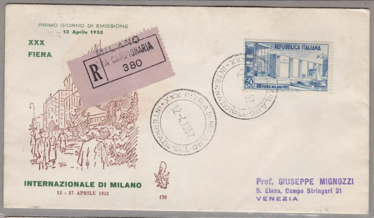 1952 Italien, 30. Fiera di Milano n. 685 Venetia, Einschreiben Reise