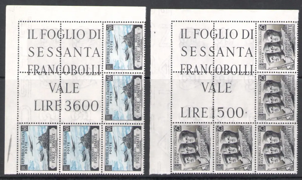 1952 Italien Republik, Eckblock Streitkräfte Nr. 19/20, postfrisch** Vollgummi und original Eckblockkatalog 2024 Euro 200 - Blaues Album Meine Republik