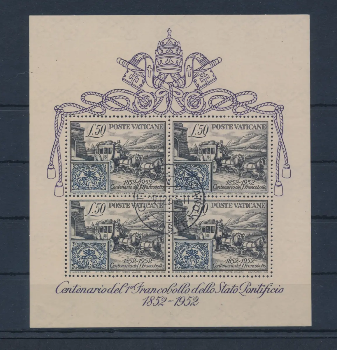 1952 Vatikan - BF Nr. 1, Hundertjahrfeier der Briefmarke des Kirchenstaates, gebraucht