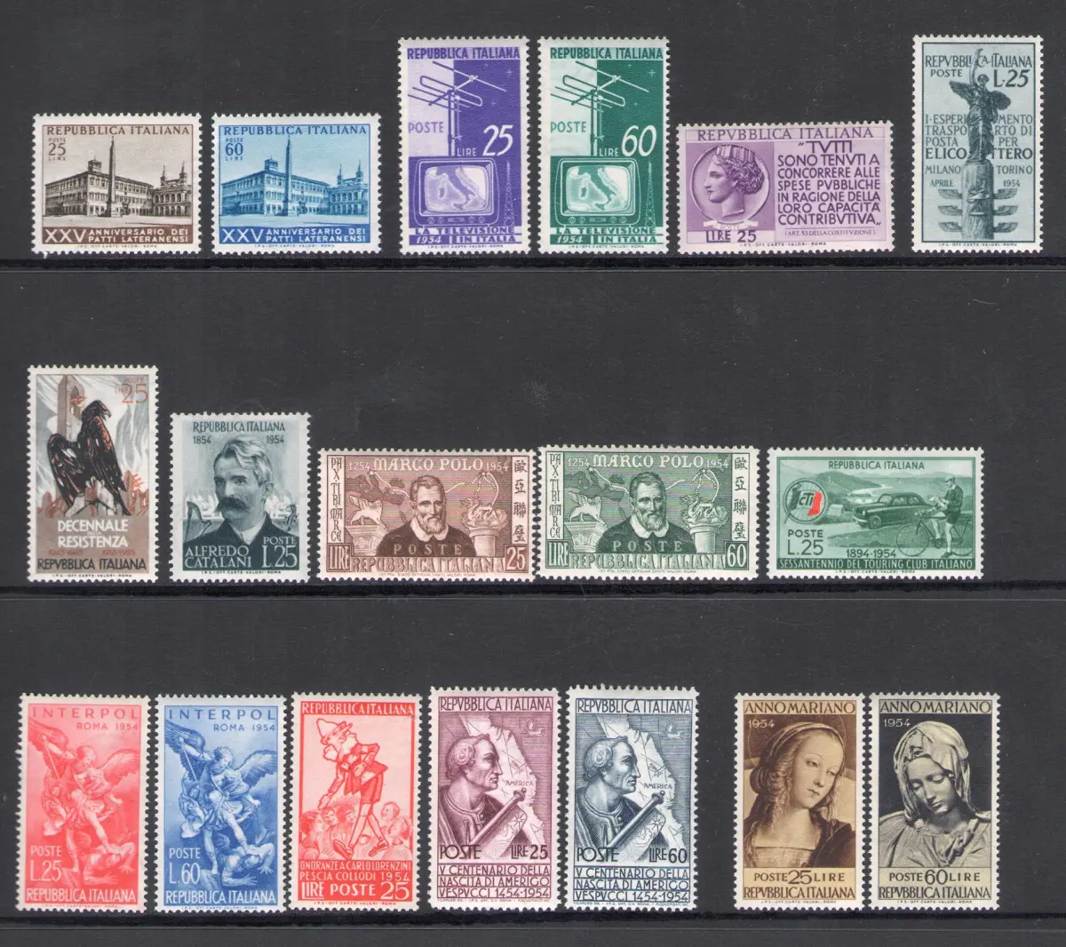 1954 Italien Republik, 18 Werte postfrisch ** Kein kompletter Jahrgang
