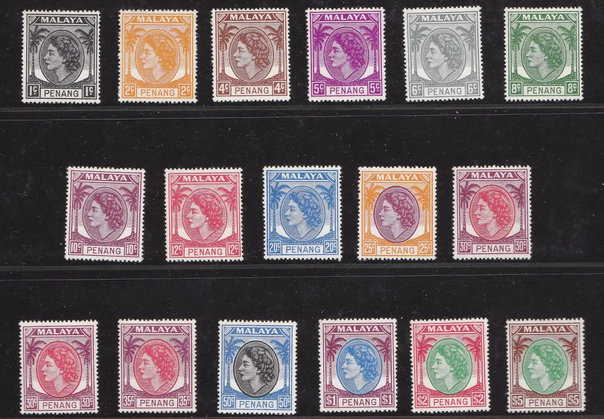 1954 MALAYSISCHE STAATEN PENANG - SG 28/43 Serie von 16 MNH / ** Queen Elisabeth Lot 100