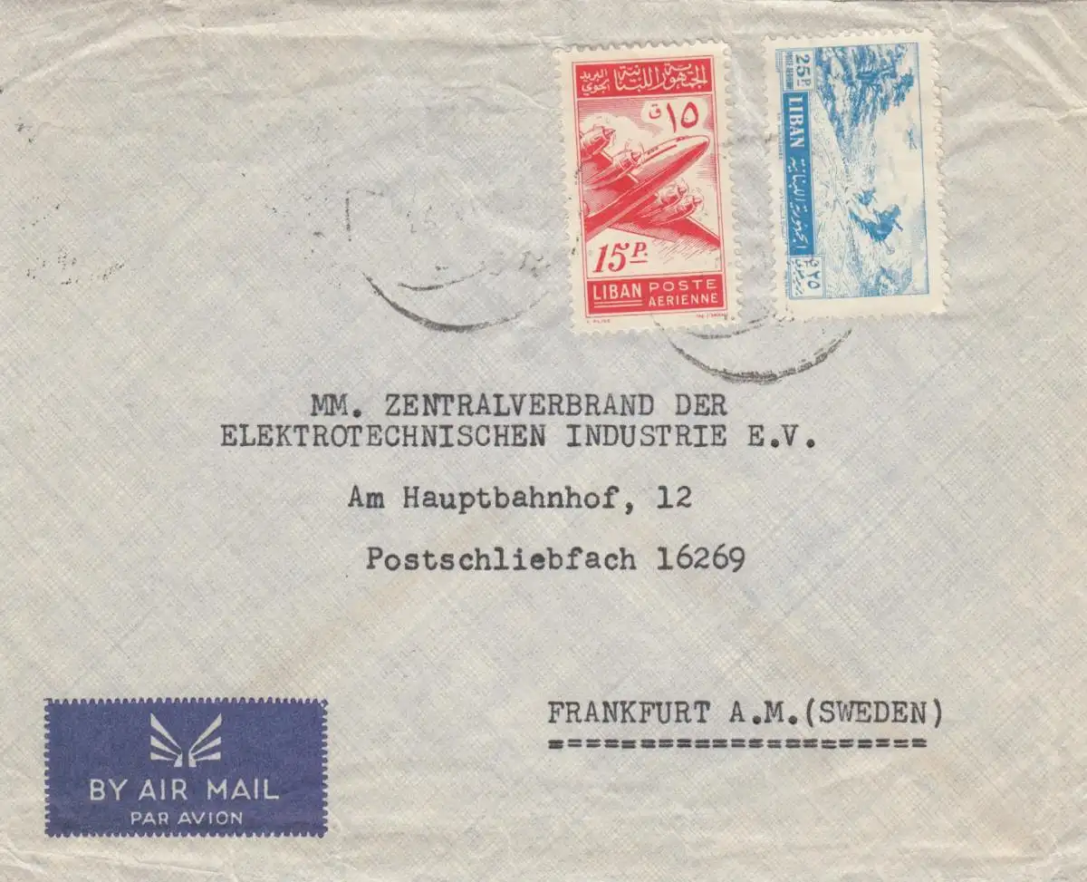 1955: air mail Beyrouth to Stockholm