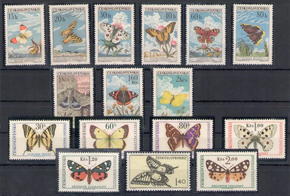 1961-1966 Ceskolovensko - Yvert Katalog Nr. 1184-92 + 1483/92 - Schmetterlinge - 16 Werte - postfrisch **