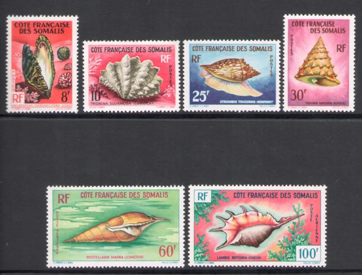 1962 Cote Francaise des Somalis - Yvert Katalog Nr. 311-14 + Luftpost Nr. 31-32 - Muscheln - 6 Werte - postfrisch **