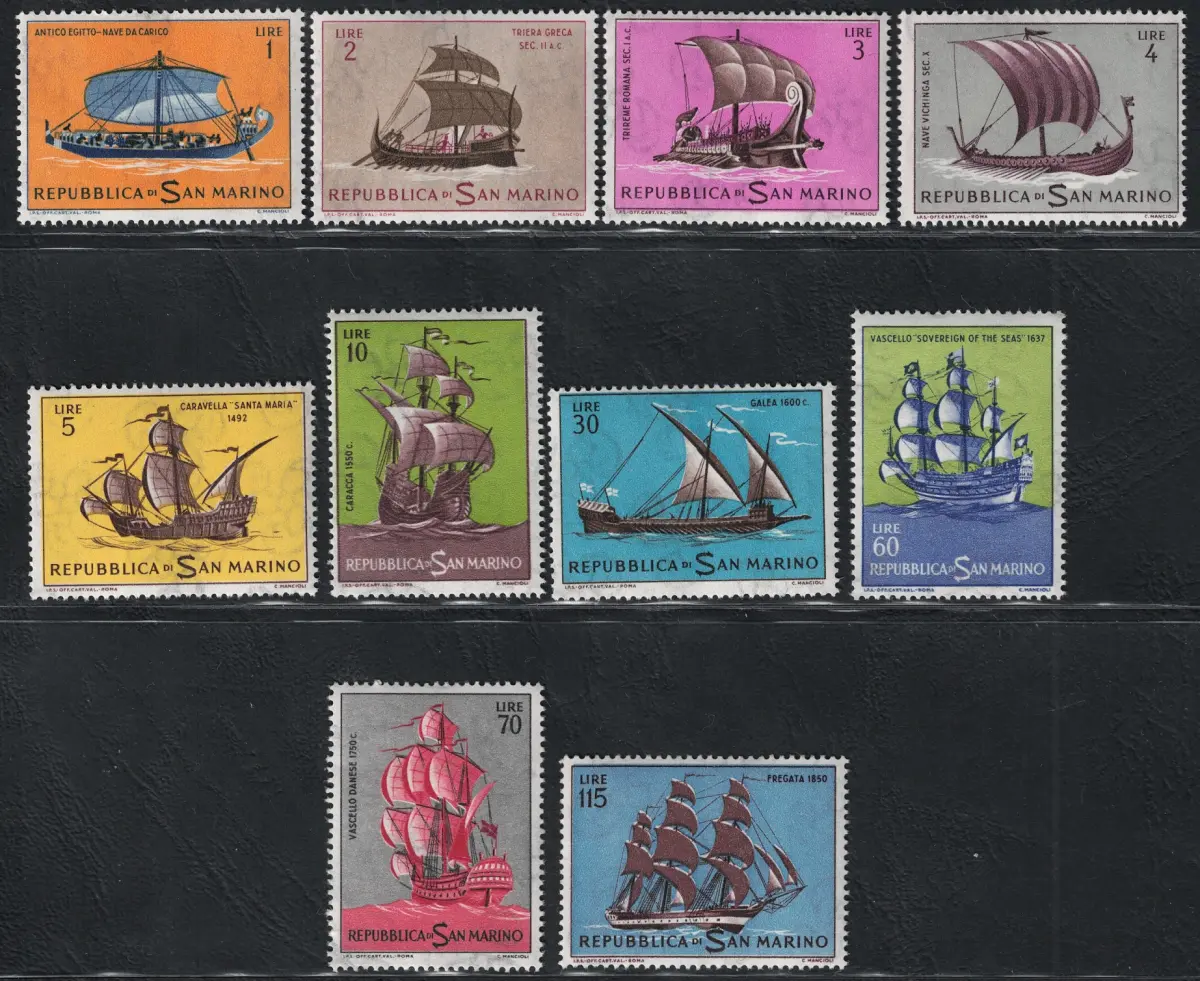 1963 San Marino, Schiffe 10 Werte # 618/27, neu und einwandfrei, postfrisch **