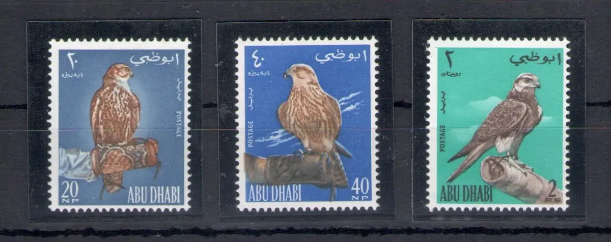 1965 Abu Dhabi, Yvert n. 12/14 - Vögel - MNH ** Yvert und Tellier Euro 65 - Themenbox 2 + Lot Universal Blau Arabische Länder