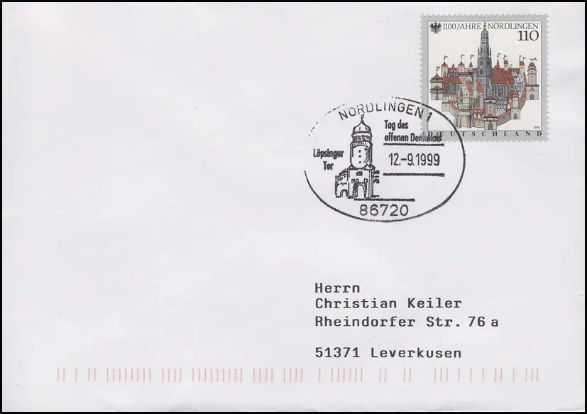 1965 Nördlingen Stadtansicht, Bf SSt Nördlingen Denkmal Löpsinger Tor 12.9.1999