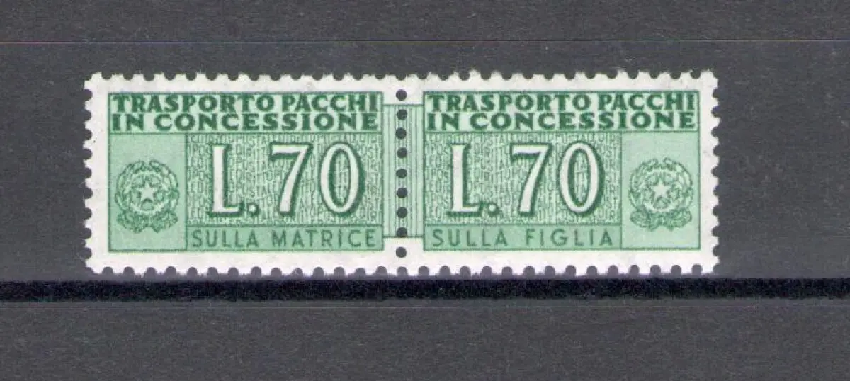 1966 Italien - Republik Pakete Konzession 70 Lire grün Nr. 15 postfrisch ** Ziffer auf den beiden Abschnitten, filigrane Sterne