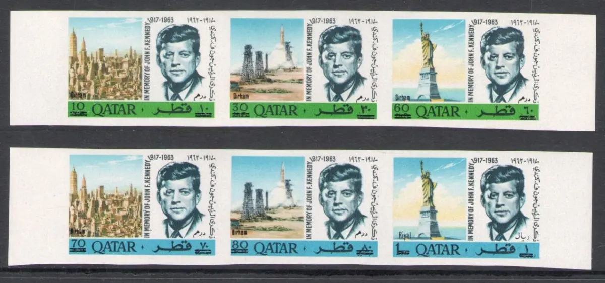 1966 Katar, SG Nr. 118/23 - Kennedy - Ungezahnt - MNH ** Stanley Gibbons Katalog 46 - Katar Red Card