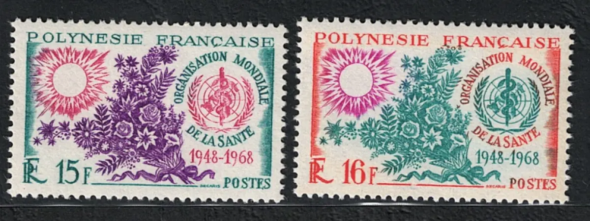 1968 Polynesien, Gesundheitswesen, Yvert Nr. 60/61, postfrisch ** Yvert Katalog Euro 24 Lot Französische Kolonien