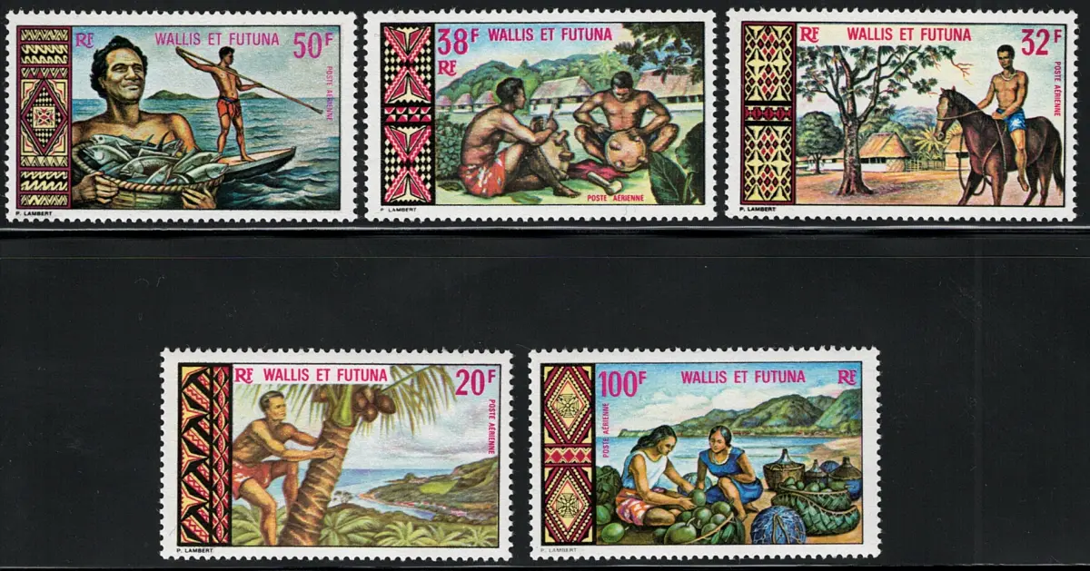 1969 Wallis et Futuna, Luftpost Aspetti dell'Isola # 33/37, MNH ** Yvert Katalog Euro 45,80 Album Rosso Bolaffi Lot Französische Kolonien