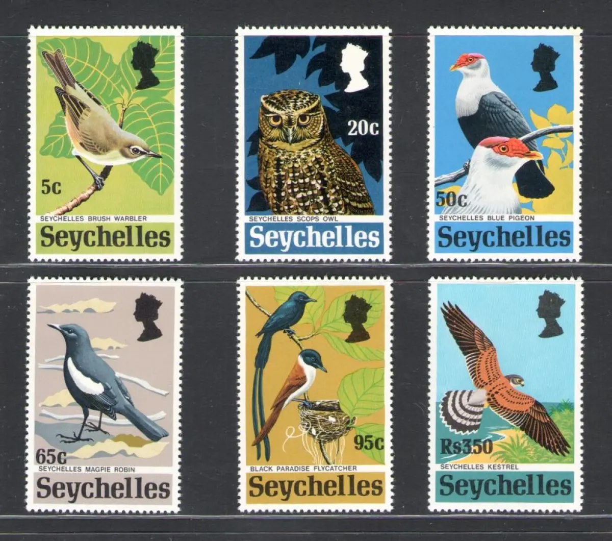 1972 SEYCHELLEN, Stanley Gibbons Nr. 308-13 - Serie mit 6 Werten - Vögel - MNH ** STANLEY GIBBONS 20 - MS Alb Havanna + Lot301-9 - Themenbox 2