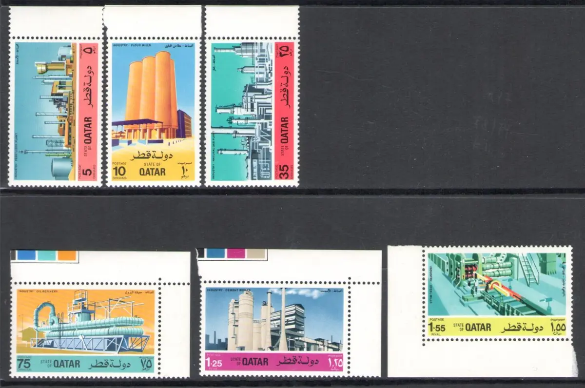 1975 QATAR, SG Nr. 568/73 - Industry Qatar - MNH ** Stanley Gibbons 35 Pfund - A/Album Red (VAE Qatar)