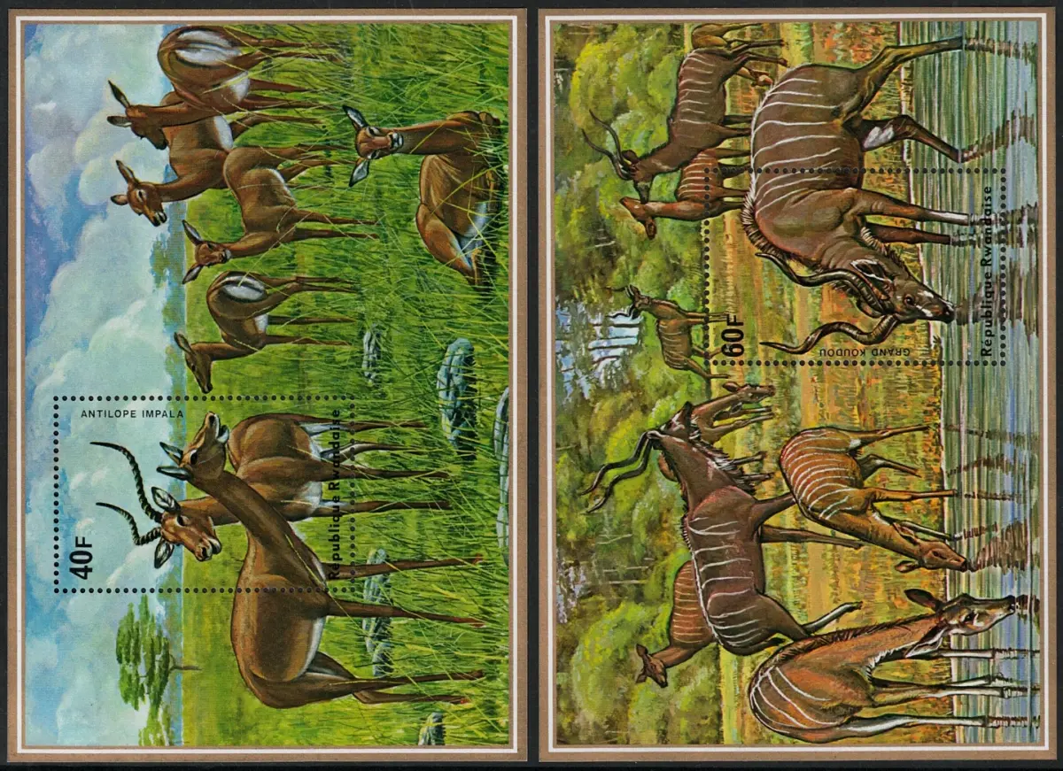 1975 Ruanda, Yvert Foglietti # 45/46, Antilopen, Fauna, MNH ** Yvert Katalog Euro 50 - grüne Box Länder Afrika