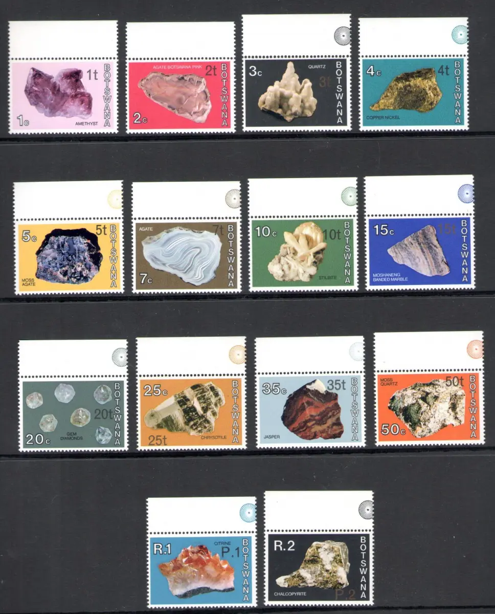 1976 BOTSWANA - Yvert Katalog Nr. 307-20 - Ordentliche Serie Mineralien Aufdruck neue Münze - 14 Val. MNH** - Alle hohen Bogenrand
