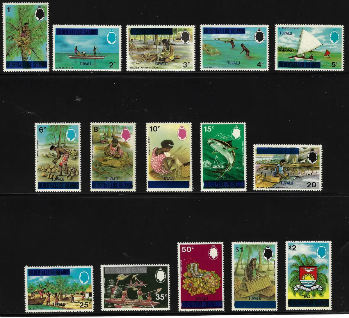 1976 Tuvalu, gewöhnlicher blauer Aufdruck, Yvert Nr. 4/18 - MNH ** Yvert e Tellier 2017 Euro 52 - Lot 256-3