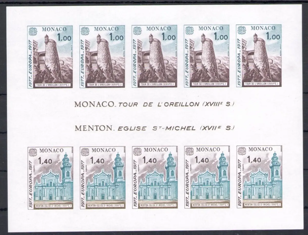 1977 Monaco, Yvert 13a - Europa Cept Bogen - Ungezähnt - MNH ** Yvert Katalog 540 Euro Auslandskarton