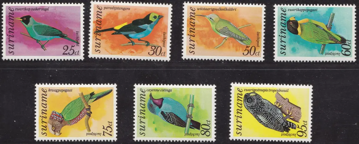 1977 SURINAME - Vögel, Yvert PA 61/67 Serie mit 7 Werten MNH/**