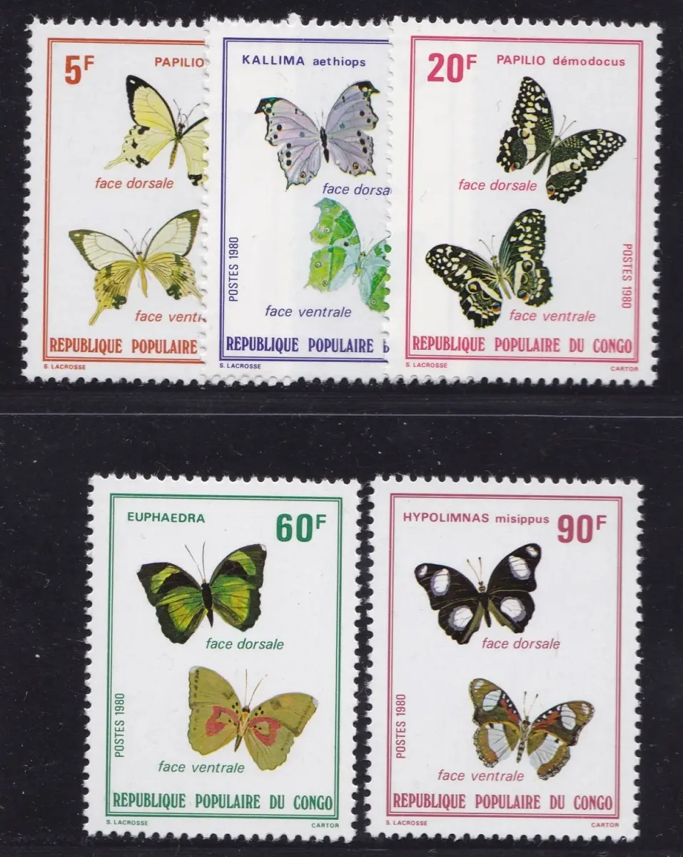 1980 KONGO - Schmetterlinge Yvert Nr. 566/570 Serie mit 5 Werten MNH/**