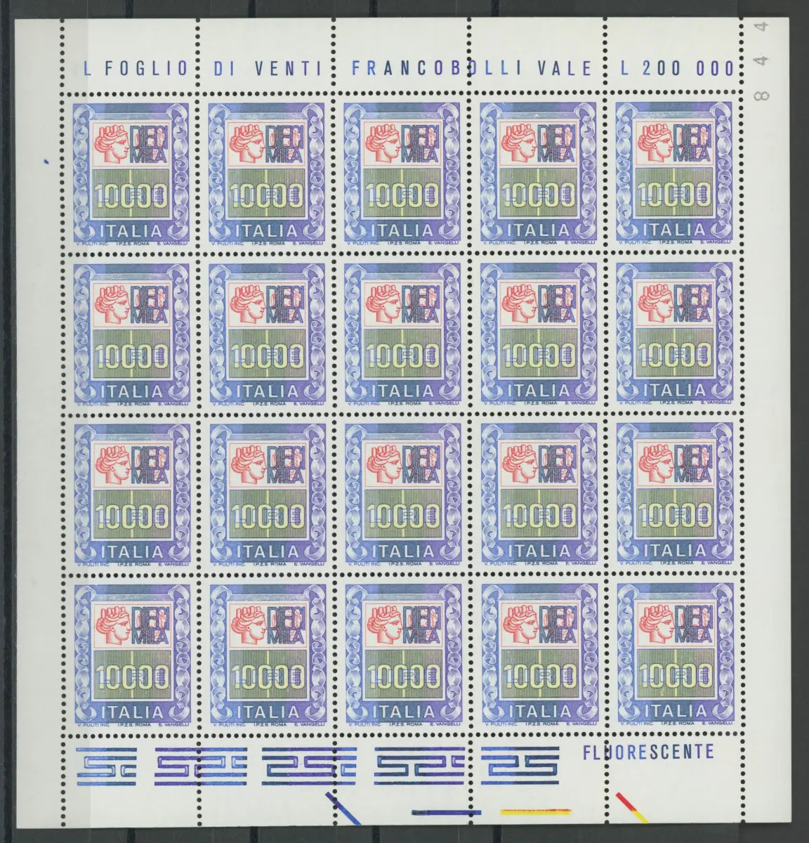 1983 Italien - Republik, Nr. 1652, 10.000 Lire polychrom, im Kleinbogen von 20, MNH ** NEU MIT VOLLGUMMI IN EINWANDFREIEM ZUSTAND.