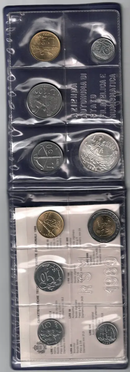 1989 Republik San Marino, Divisionsmünzen, FDC MIT 1.000 Lire in Silber