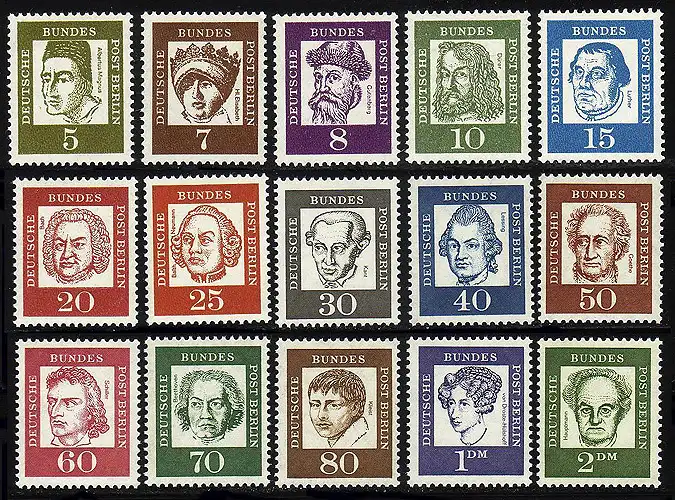 199-213 Bedeutende Deutsche, 15 Werte kompletter Satz, postfrisch **