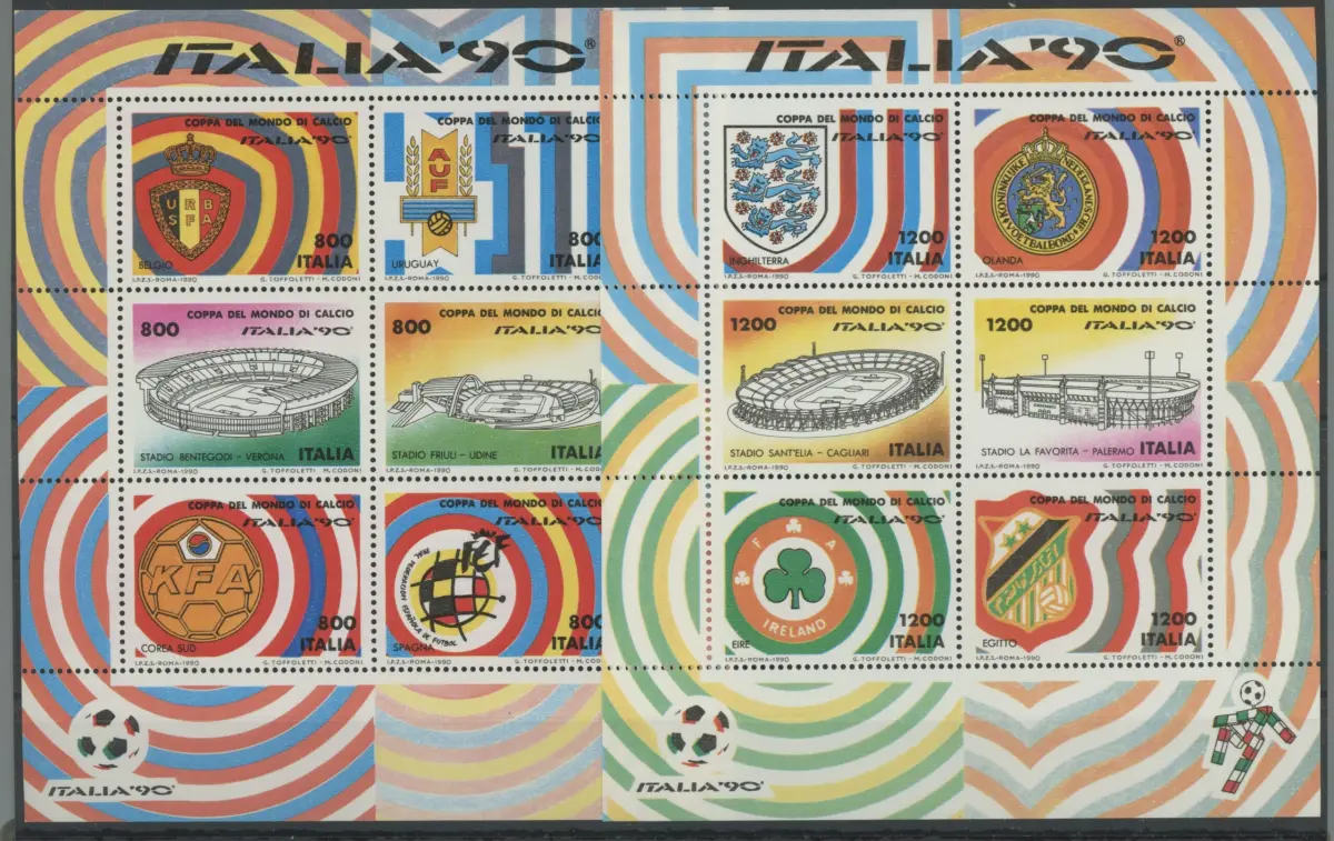 1990 Italien - Republik, 6 Zettel 'Italia '90' - BF 4/9 - MNH ** Einheitlicher Katalog 2021 Euro 30
