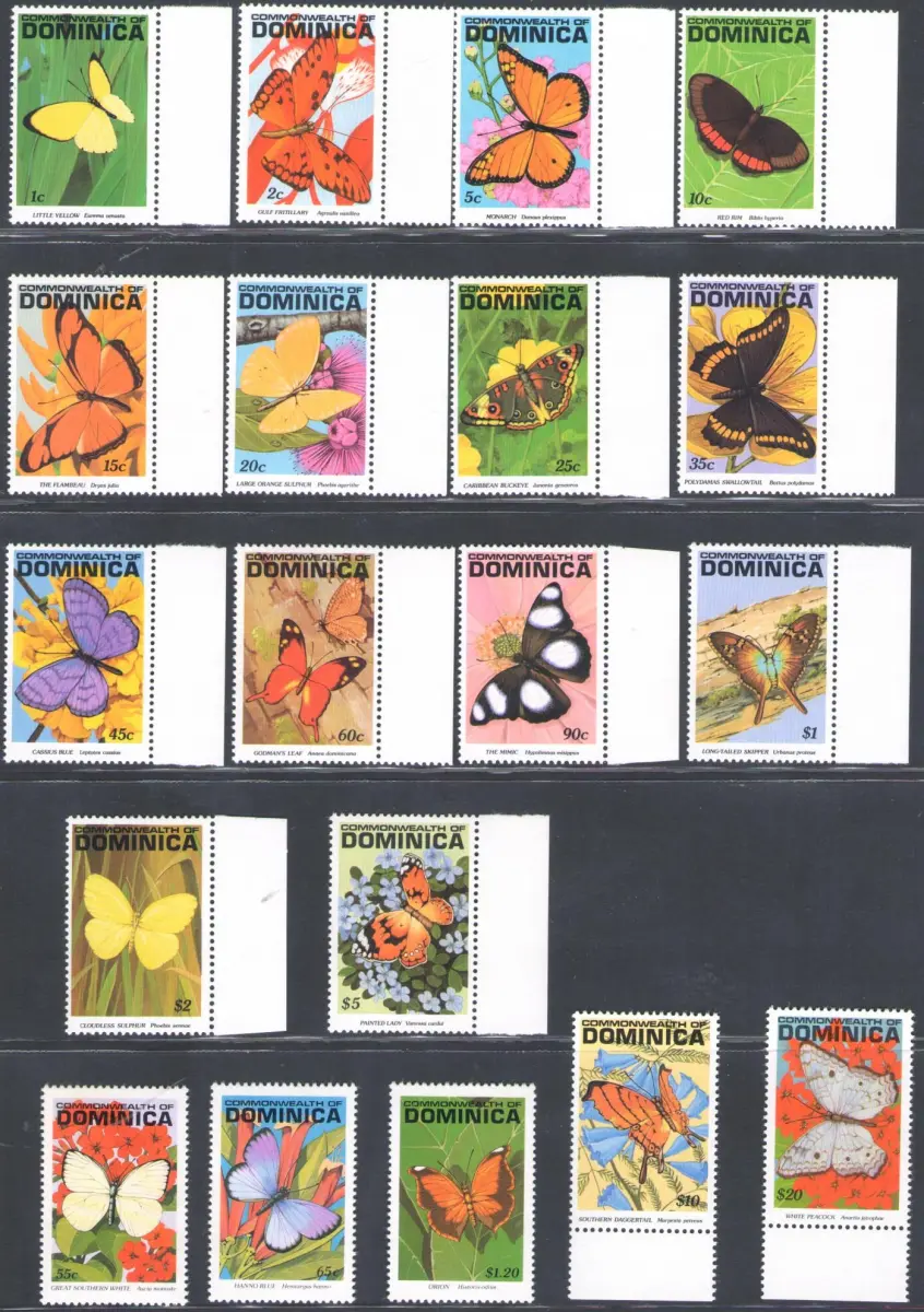 1991-92 Dominica, Schmetterlinge I-II-III-IV Yvert # 1295-08-1345-1356-1462/64 - MNH ** Yvert Katalog Euro 56 - Auslandskarton Kolonien