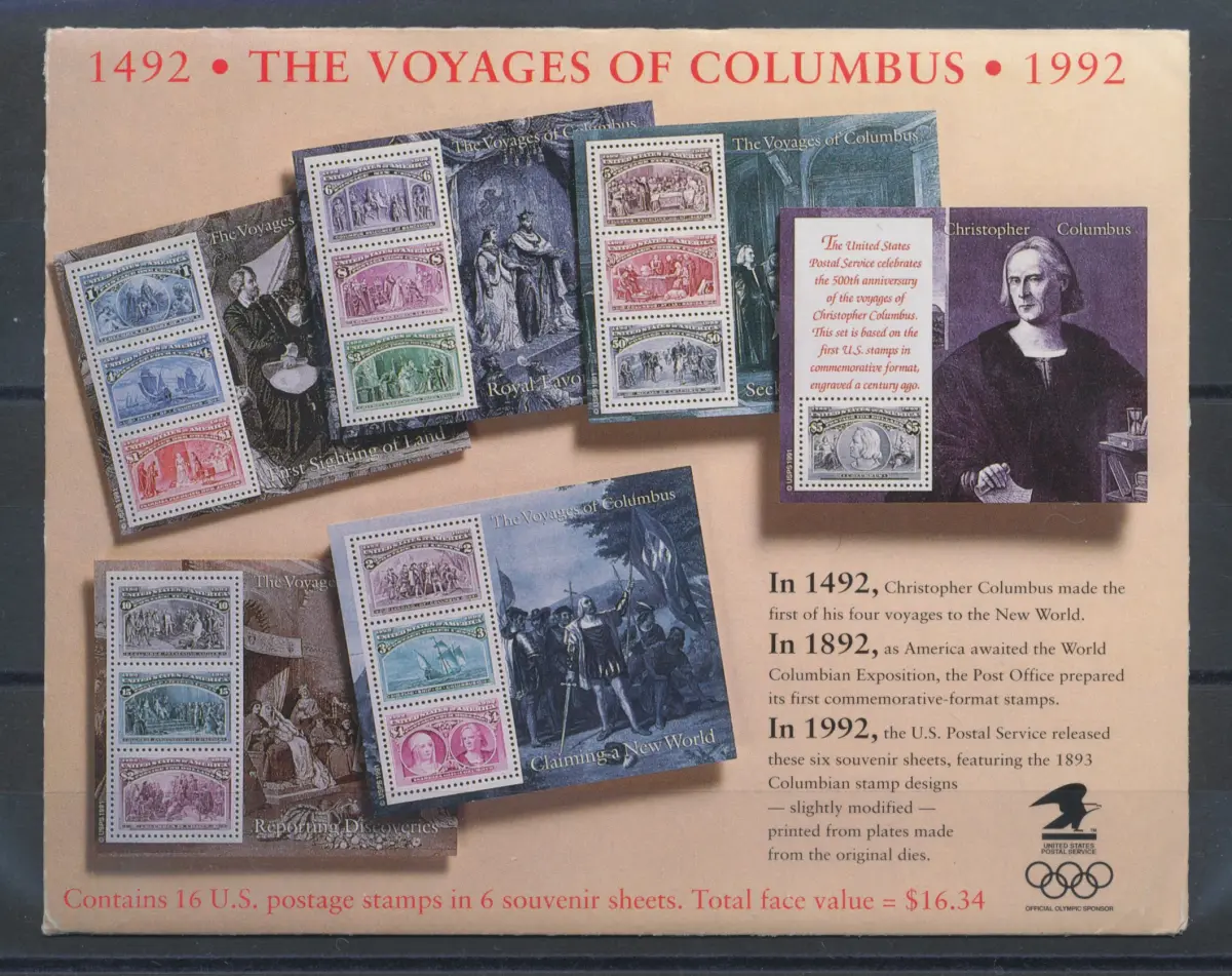 1992 USA - 1492-1992 The Voyages of Columbus - 6 Zettel/Souvenir Sheets - In Commemorative Special Box - MNH**