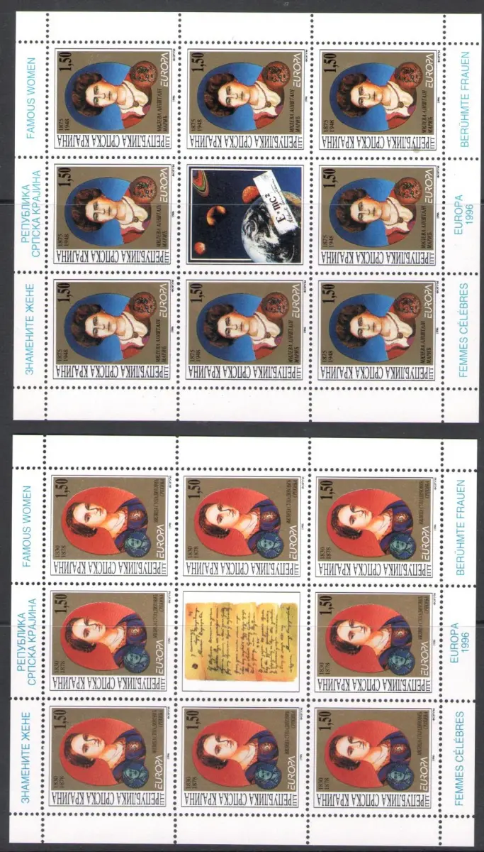 1996 EUROPA CEPT - Kroatien Krajina Nr. 54/55 - 2 Miniblätter - postfrisch ** Europa Katalog 2016/17 Euro 450 - Box Lot 457