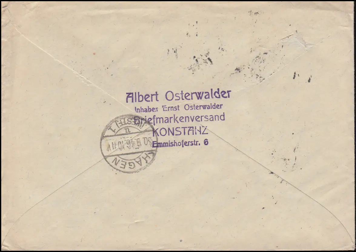 mit Ankunftsstempel HAGEN (WESTF.) 30.9.46, bedarfsmäßig unsauber geöffnet