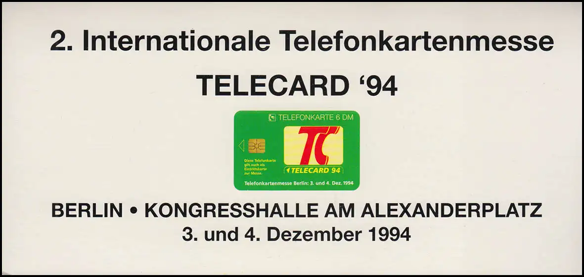 2. Internationale Telefonkartenmesse TELECARD'94 Folder mit 3 Karten ungebraucht