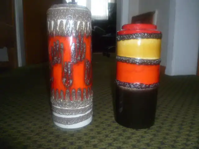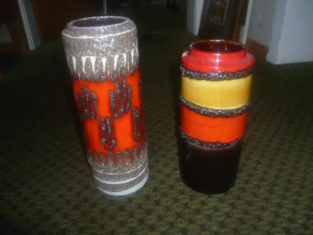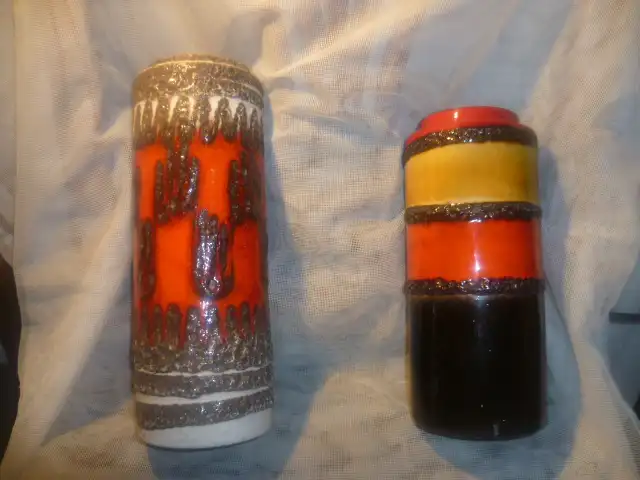 2 Stück Mid Century Moderne Fat Lava Westdeutschland Keramik Vase - Scheurich 203 26 + 22 Design von Gerda Heuckeroth H: 26 cm und 22 cm
