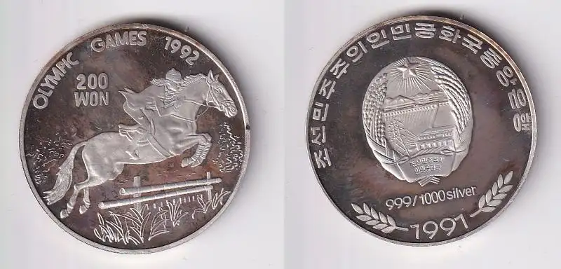 200 Won Silber M?nze Korea Olympiade 1992 Reiter 1991 (151683)