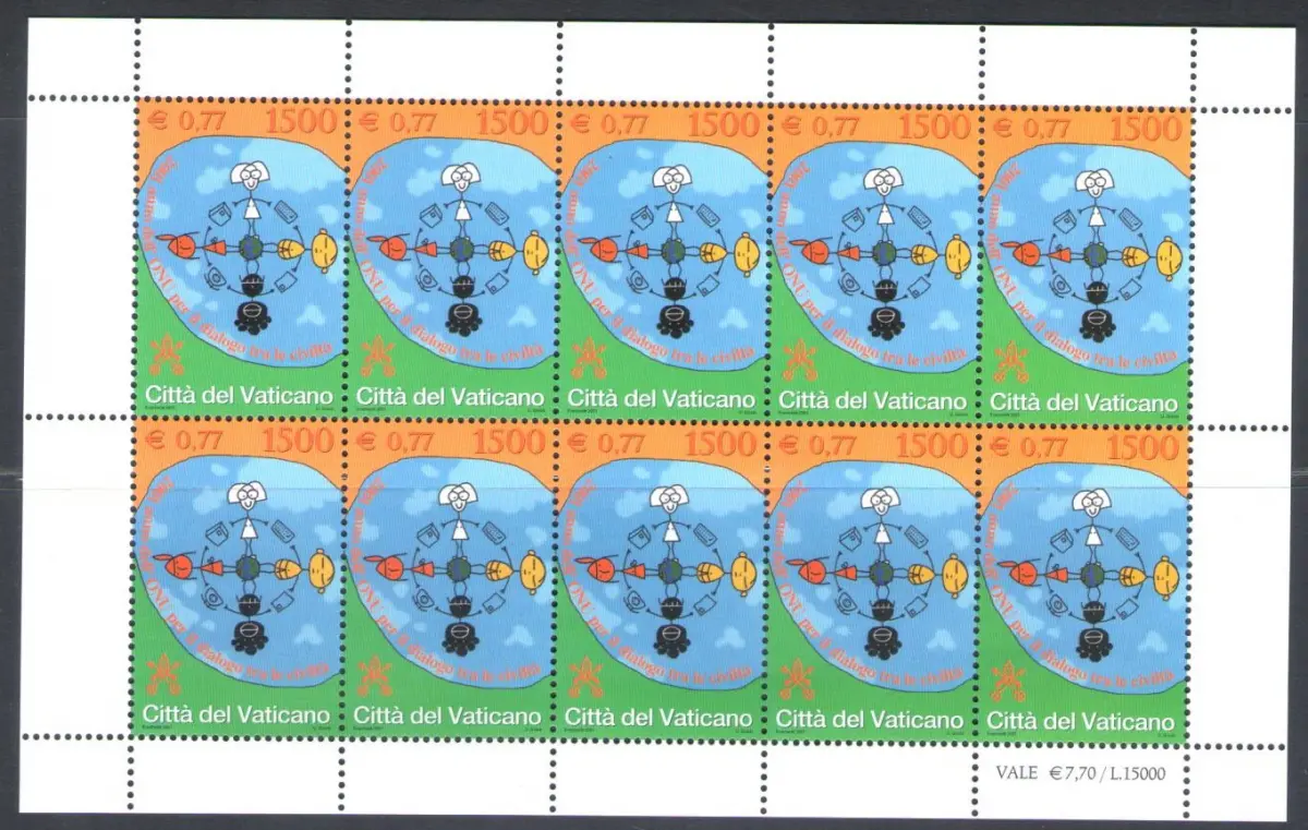 2001 Vatikan 1 Kleinbogen mit 10 Werten, UN-Nr. MF 1237 - MNH ** - Es handelt sich um Kleinbogen Einheitskatalog Euro 30 Lagerbestand