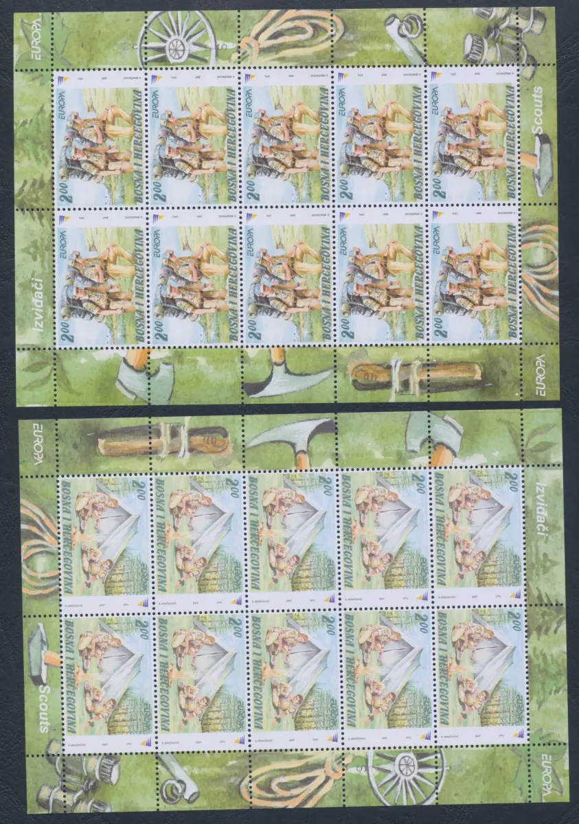 2007 EUROPA CEPT, Bosnien und Herzegowina, 2 Kleinblätter à 10 Serien, 100 Jahre Pfadfinderschaft, postfrisch ** ref grünes Album 17