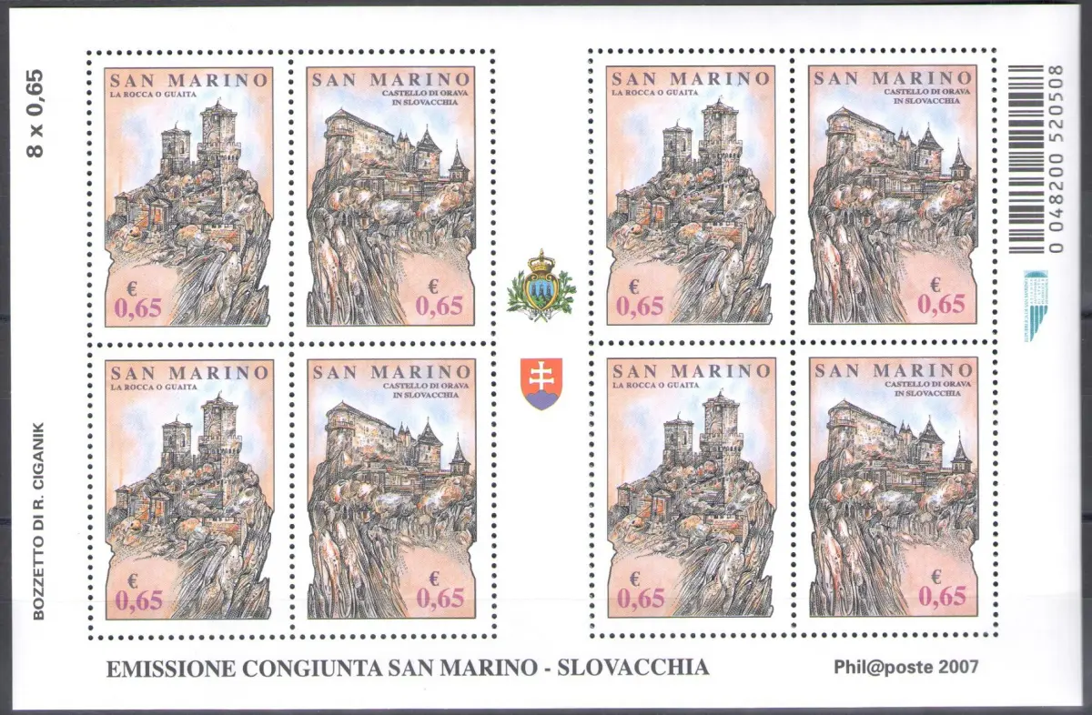 2007 San Marino, Rocche di Libertà, BF 92 - MNH ** Einheitlicher Katalog Euro 12