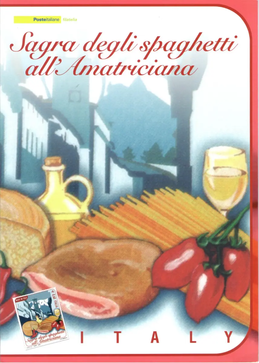 2008 Italien - Republik, Folder - Spaghetti Amatriciana Nr. 183 - MNH ** Inhalt: 1 Briefmarke 1 Postkarten 1 Ersttagsumschlag 1 Philateliekarte Es handelt sich um einen neuen und perfekten Folder, der von der Post stammt.