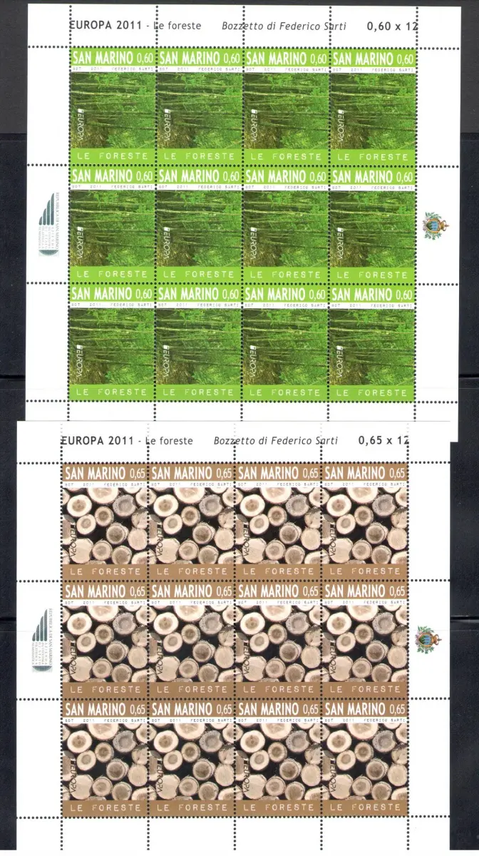 2011 EUROPA CEPT San Marino 2 Miniblätter mit 12 Werten, Le Foreste, postfrisch **