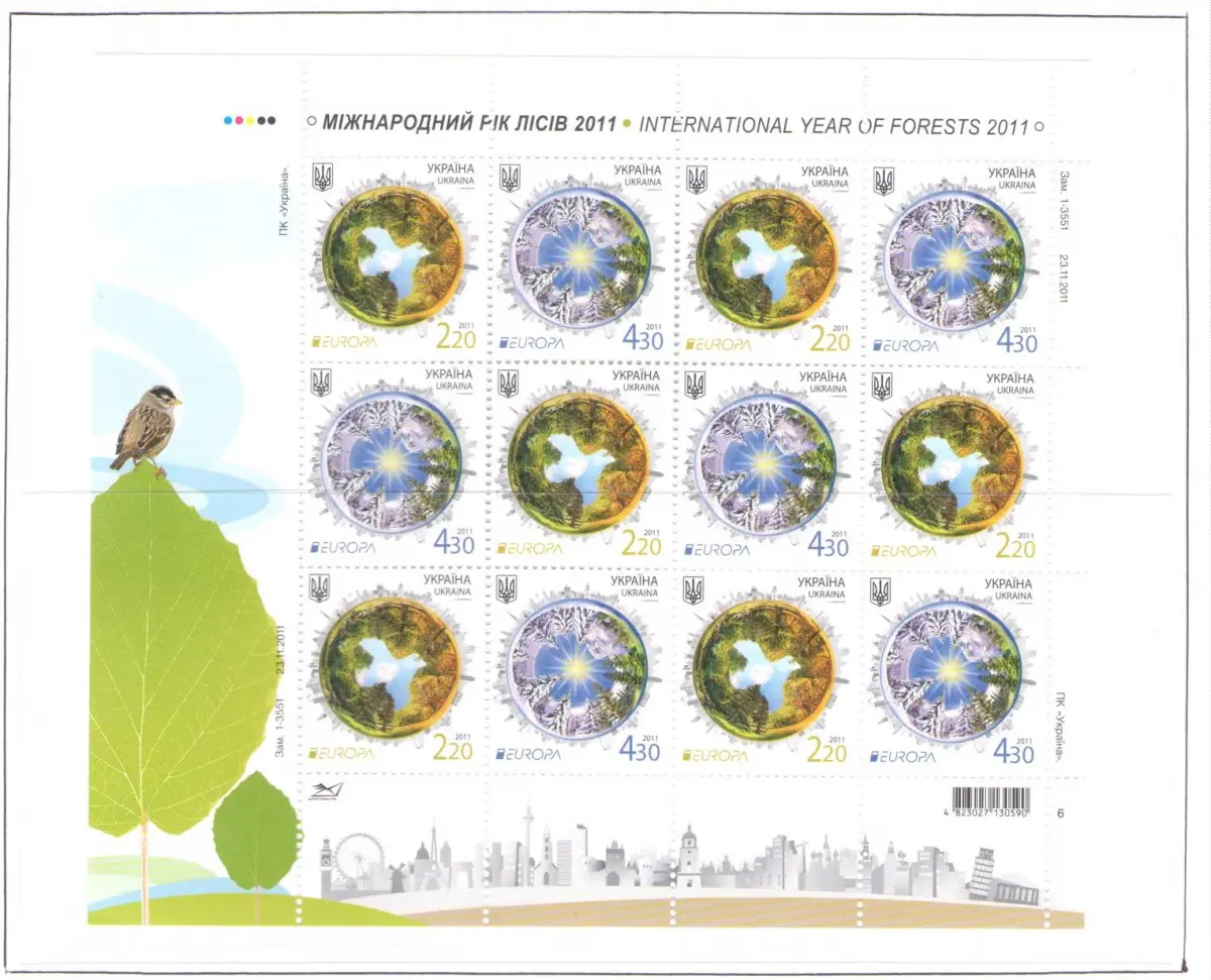 2011 EUROPA CEPT Ukraine, 1 Kleinbogen mit 6 Paaren, Die Wälder, postfrisch **