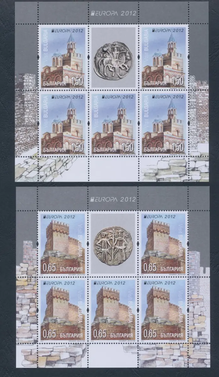 2012 EUROPA CEPT Bulgarien, 2 Miniblätter von 5 Serien, Tourismus, postfrisch **