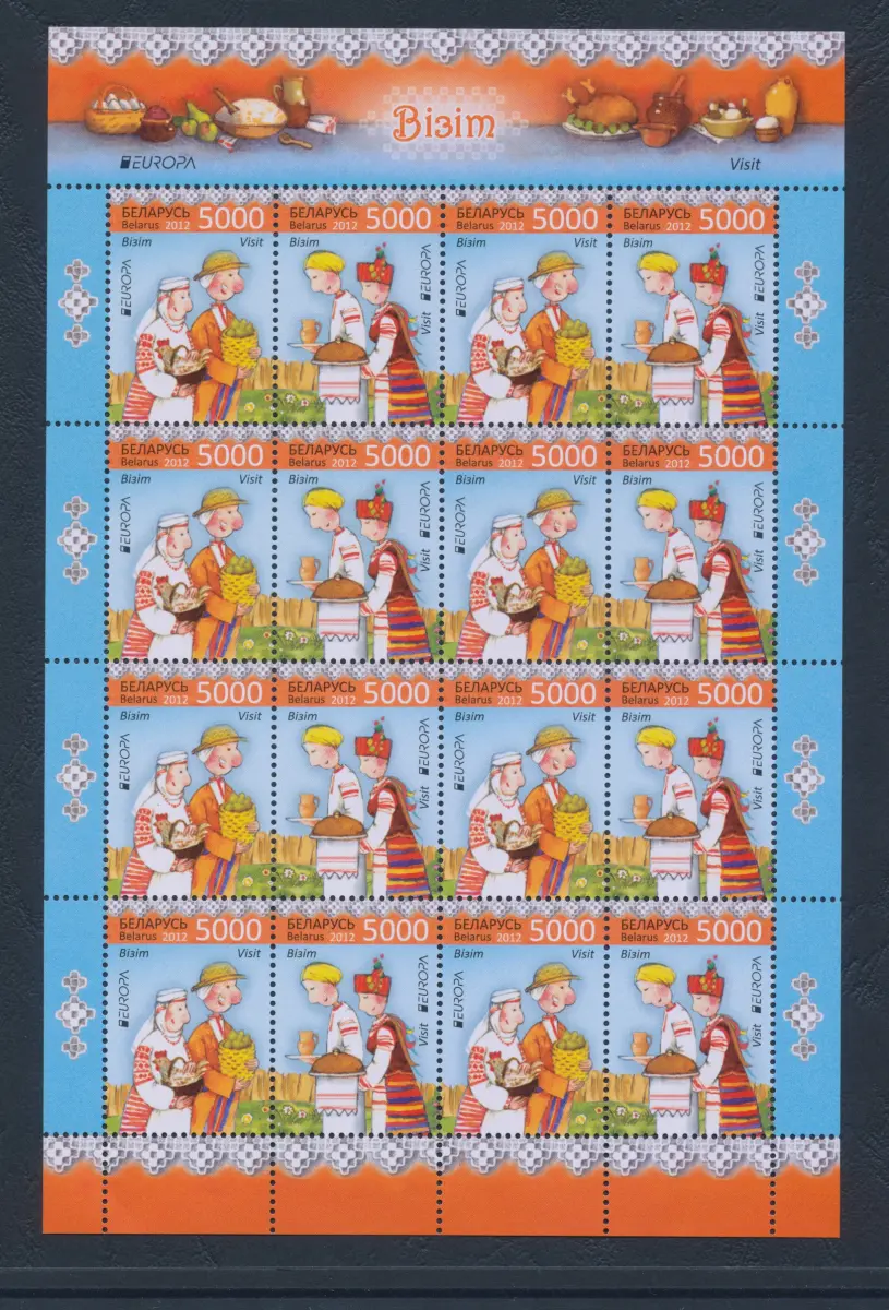 2012 EUROPA CEPT, Weißrussland, 1 Kleinbogen mit 8 Serien, Tourismus, postfrisch **