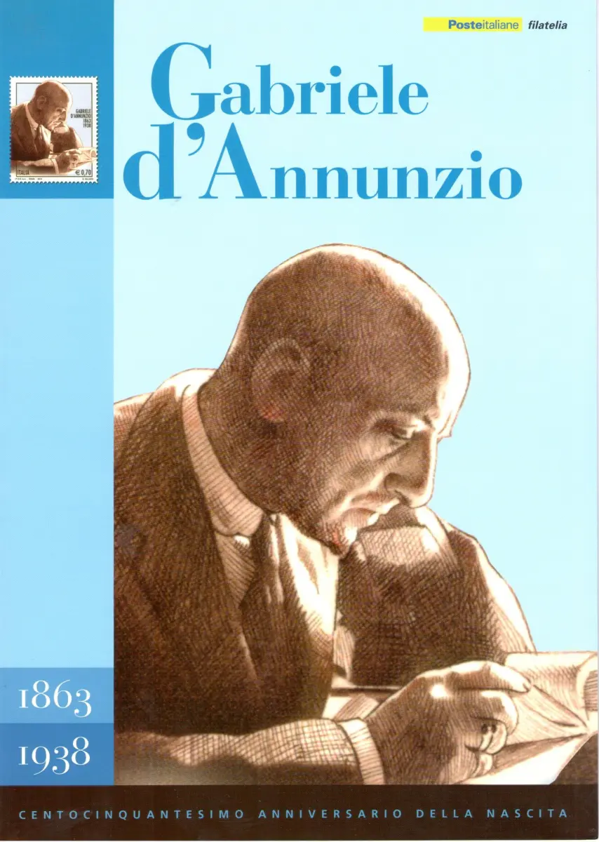 2013 Italien - Republik, Folder - Gabriele D'Annunzio Nr. 339 - MNH ** Inhalt: 1 neue Briefmarke + Silberfolie 1 Philateliekarte 1 Postkarte 1 Ersttagsumschlag Pferd Es handelt sich um einen neuen und perfekten Folder sowie aus der Post.