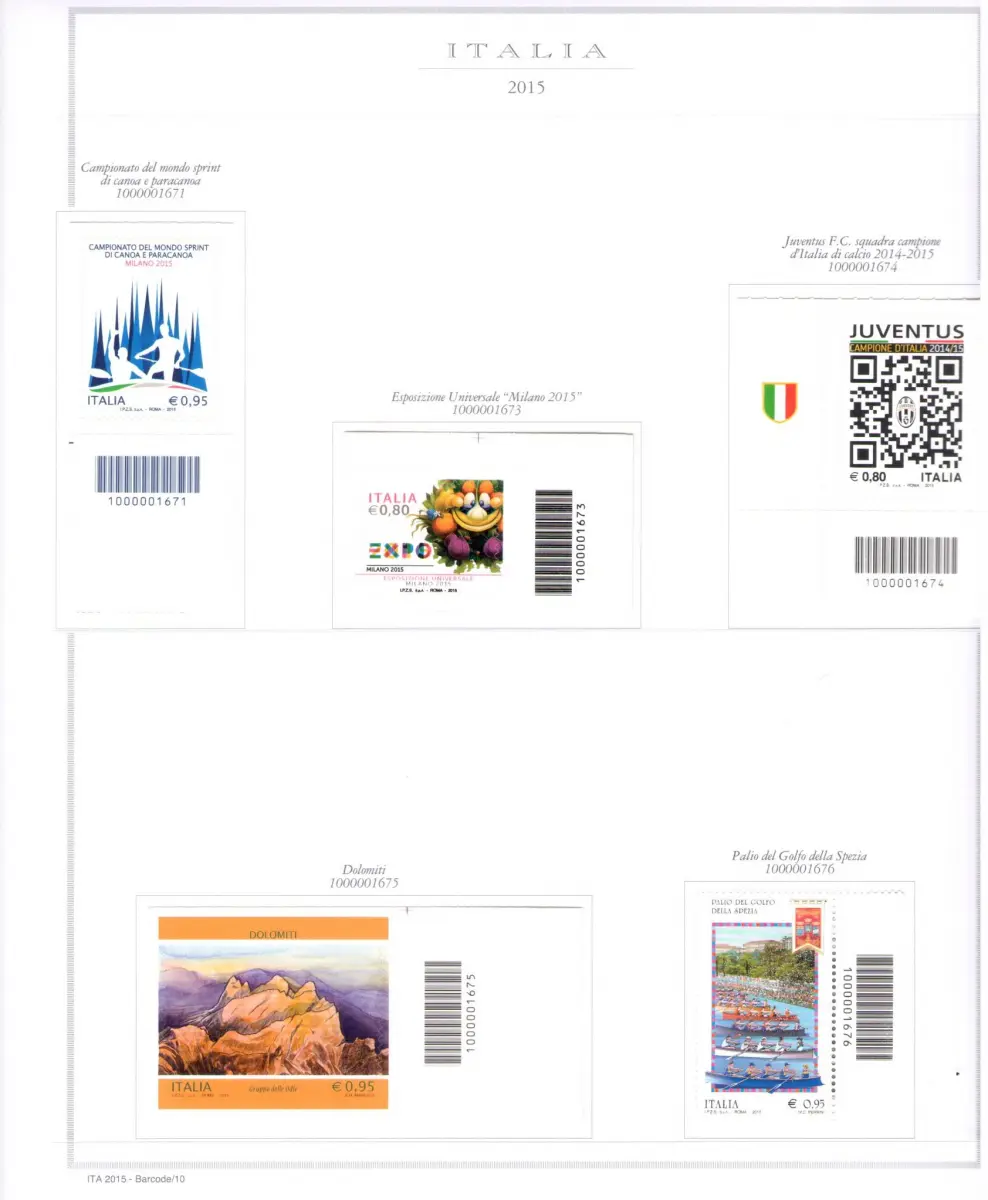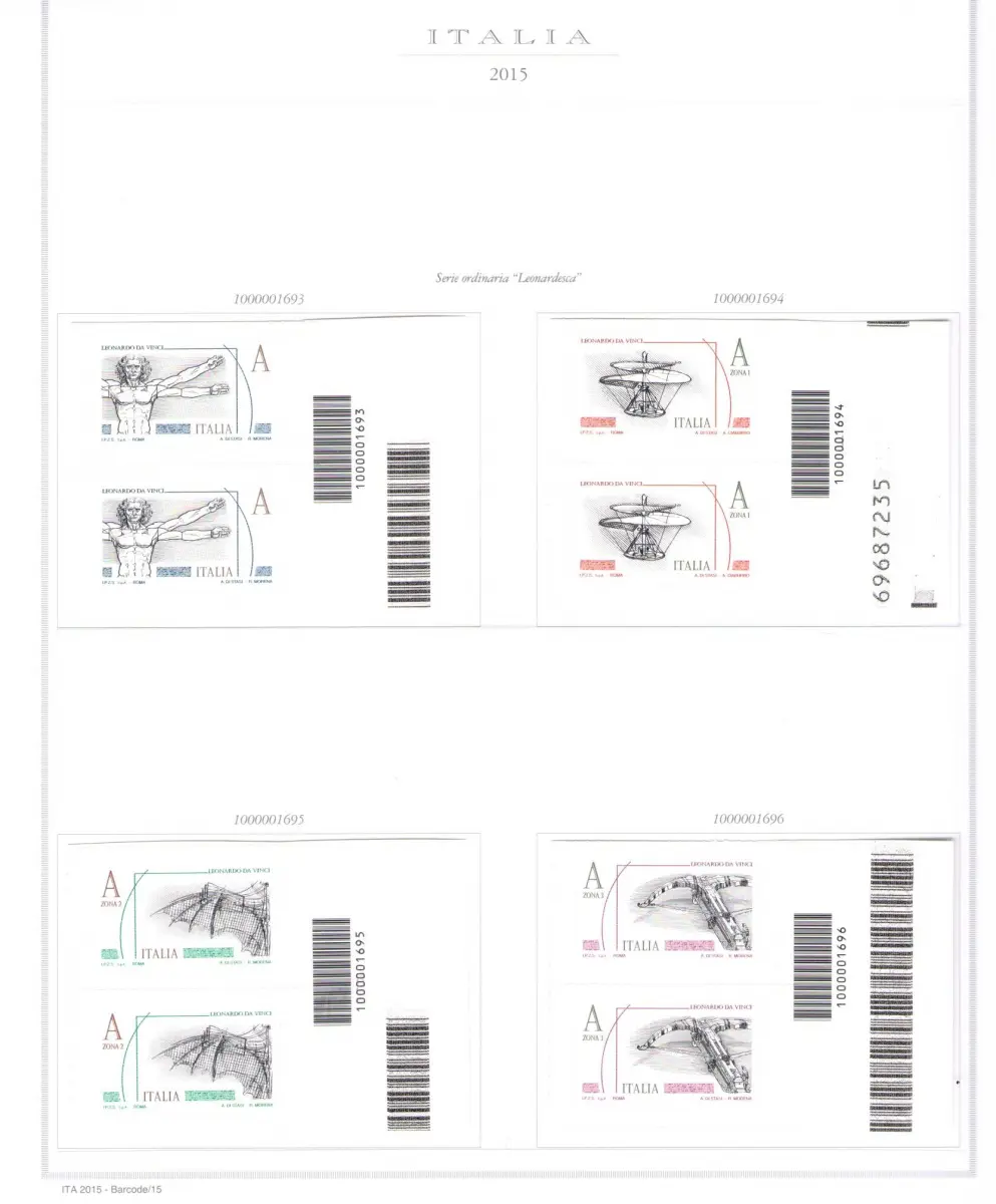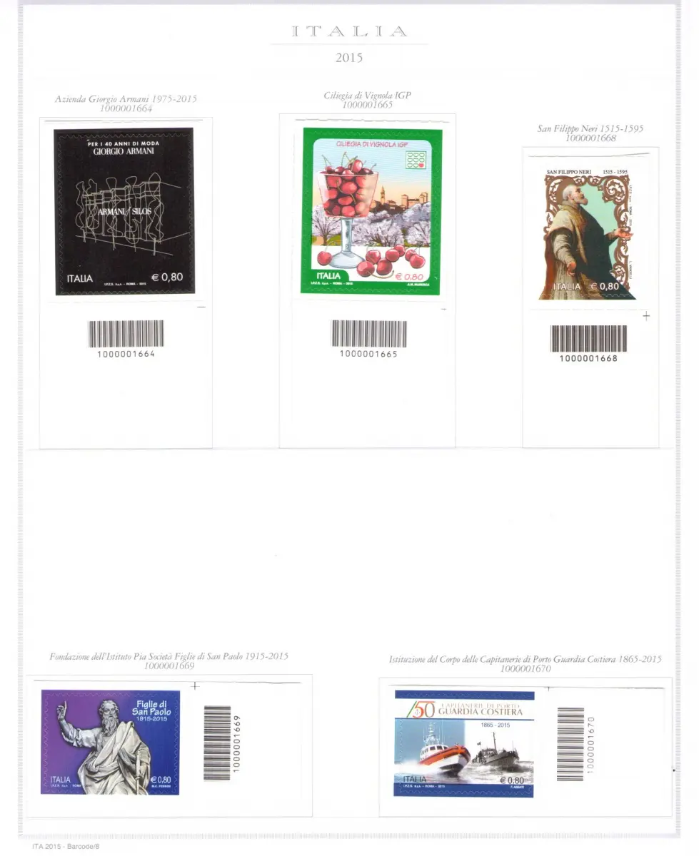 2015 Italienische Republik Barcodes kompletter Jahrgang 78 Werte + 2 Zettel (Expo + Weine) auf 18 Marineblättern