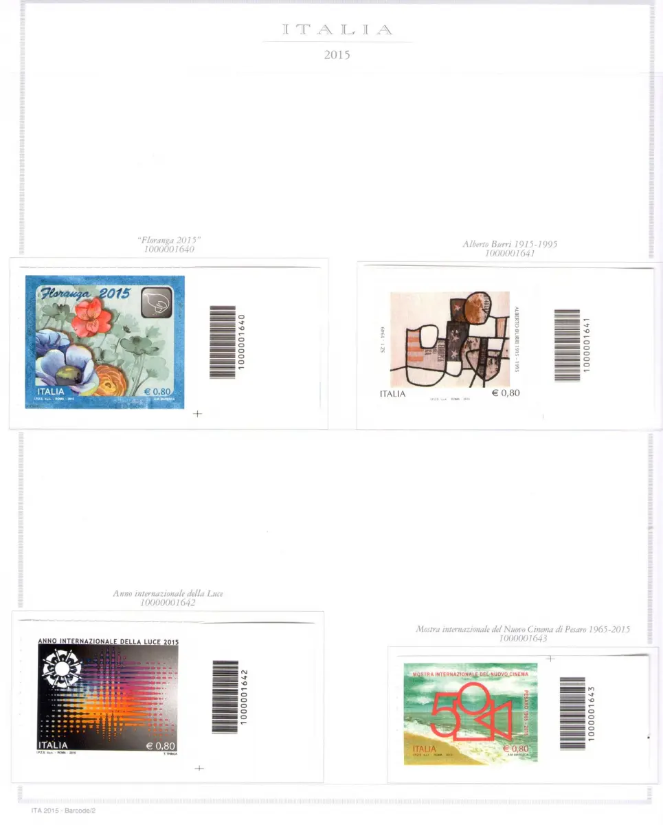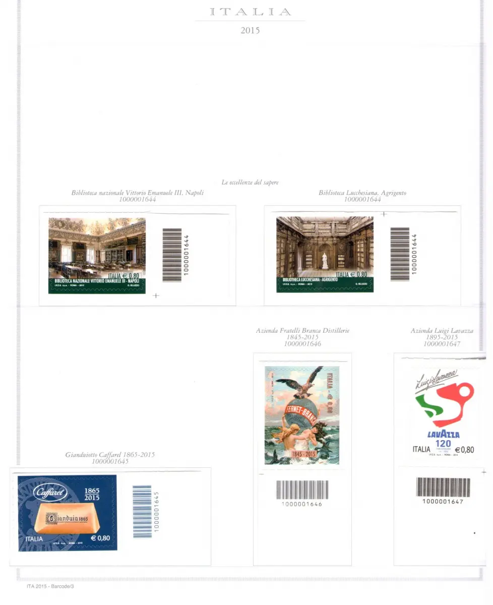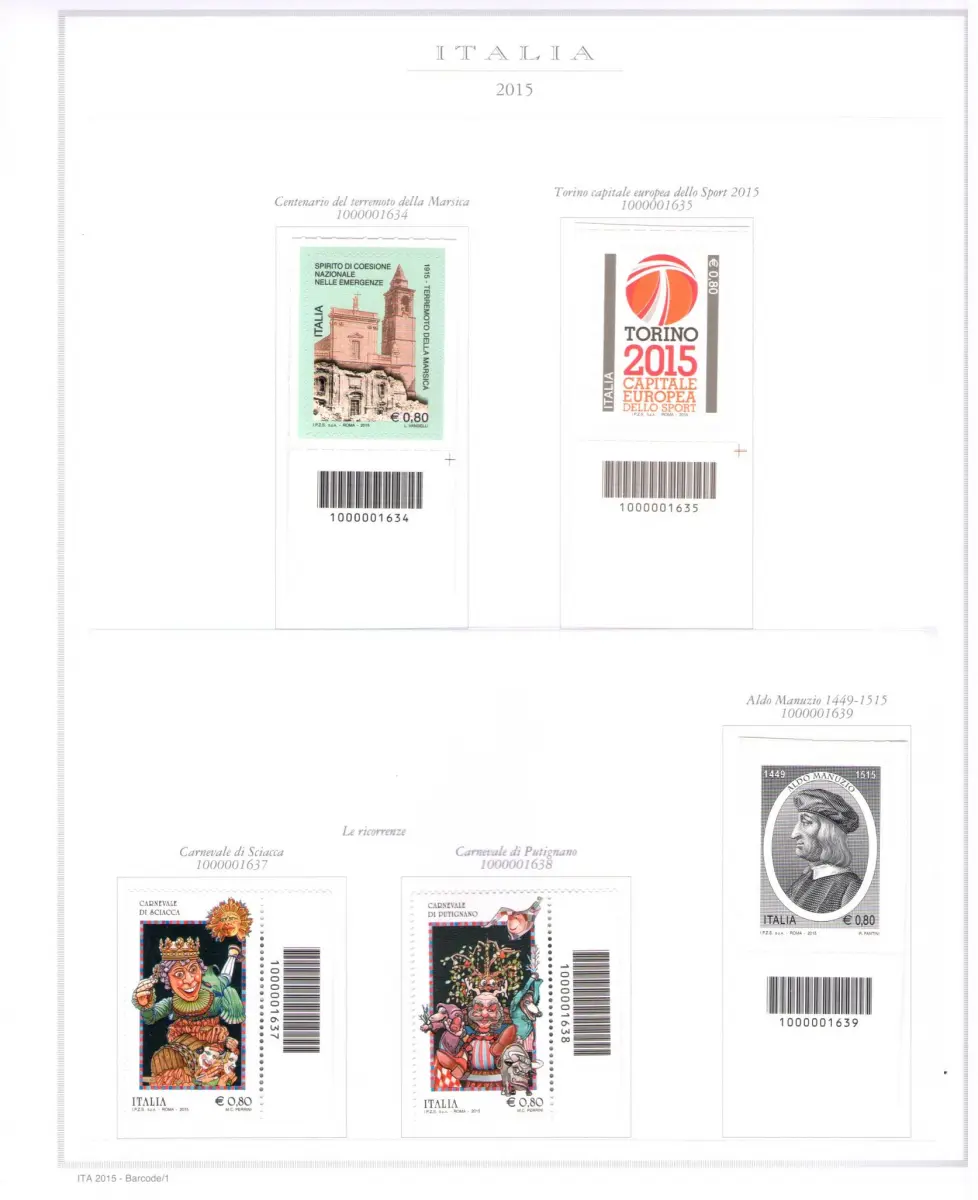 2015 Italienische Republik Barcodes kompletter Jahrgang 78 Werte + 2 Zettel (Expo + Weine) auf 18 Marineblättern