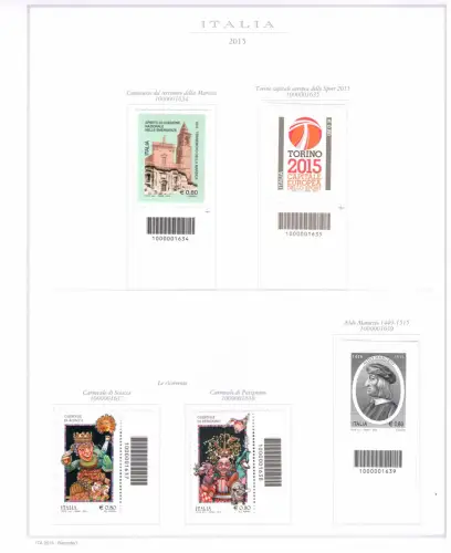 2015 Italienische Republik Barcodes kompletter Jahrgang 78 Werte + 2 Zettel (Expo + Weine) auf 18 Marineblättern