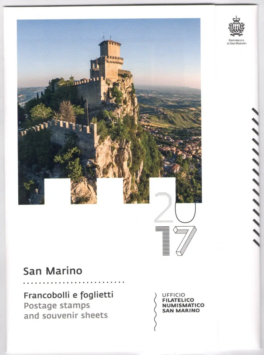 2017 San Marino, offizielles Jahresbuch der philatelistischen Ausgaben, Briefmarken, Zettel - MNH ** WUNDERSCHÖNES Faltblatt INKLUSIVE ALLER AUSGABEN, GEDRUCKT VON DER TYPOGRAFIE San Marinese