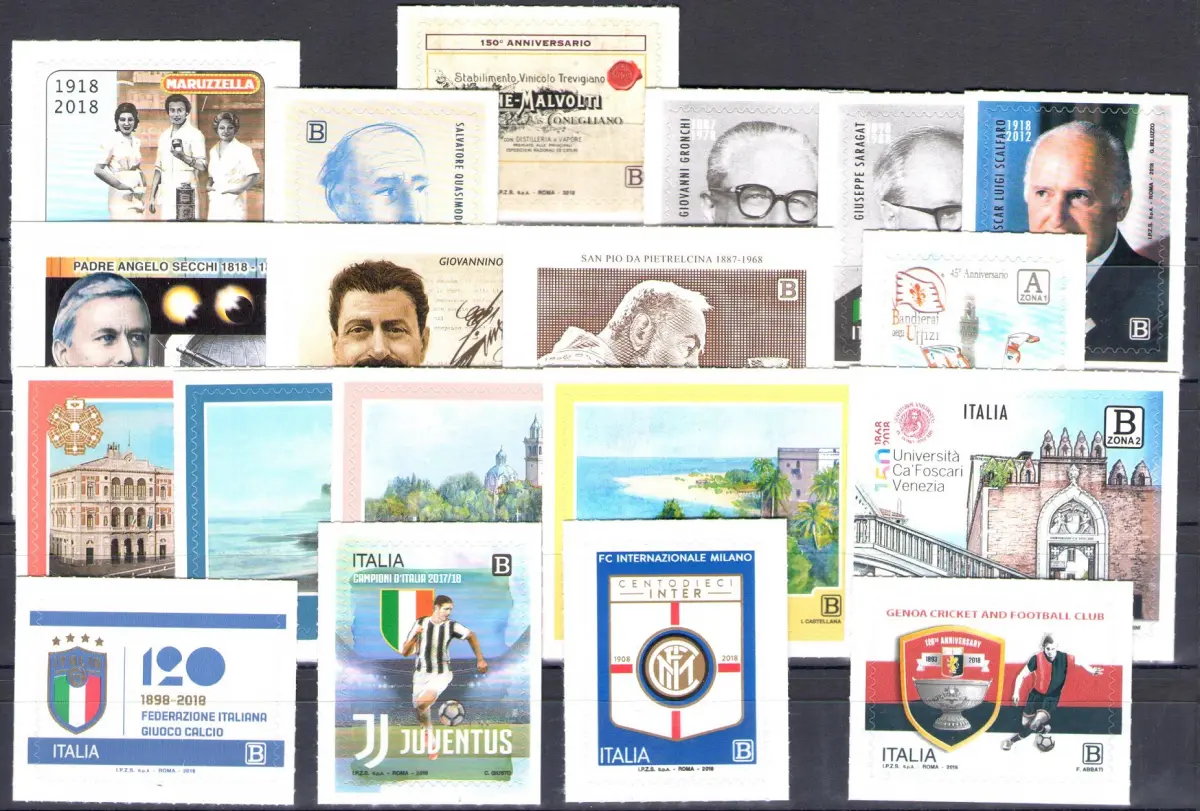 2018 Italienische Republik, kompletter Jahrgang 58 Werte + 1 Blatt (100 Jahre Aula Montecitorio) neue Briefmarken, postfrisch ** neu, perfekt + Seeblätter Modell King (neu und inzellophaniert)